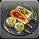 Roasted over hot coals, these sticks of rigid tofu and vegetables are seasoned with a sweet miso sauce, having every bite to be savory and smoky!