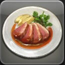 An entire roasted duck on a wood fire, professionally sliced into perfect portions for each serving.